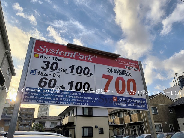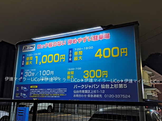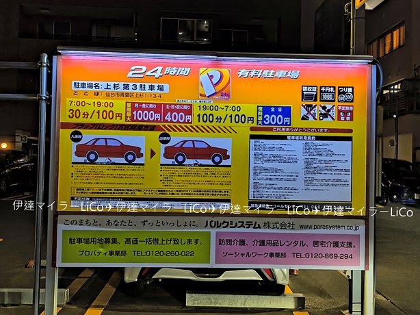 「パークジャパン 仙台上杉第5」さんも、7~19時:30分100円。
