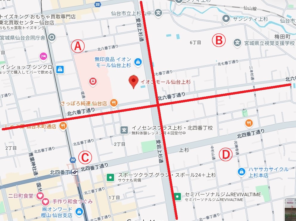 「イオンモール仙台上杉」さんの南東のエリアⒹをご紹介いたします🎉