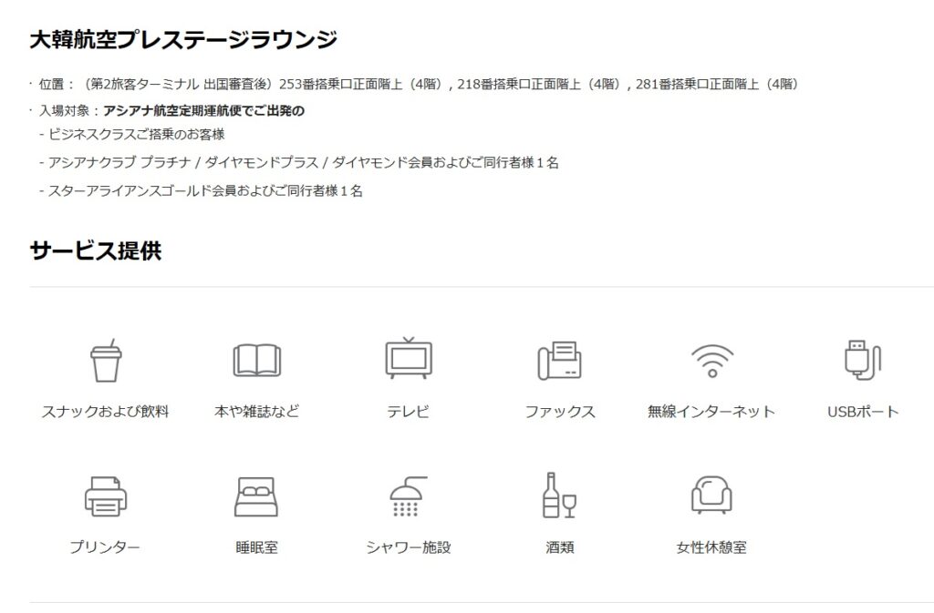 アシアナ航空便およびStar Allianceの運航による便のビジネスクラスの利用、スターアライアンスグループの上級会員のであれば、East・Central・Westのラウンジホッピングが可能です🎉