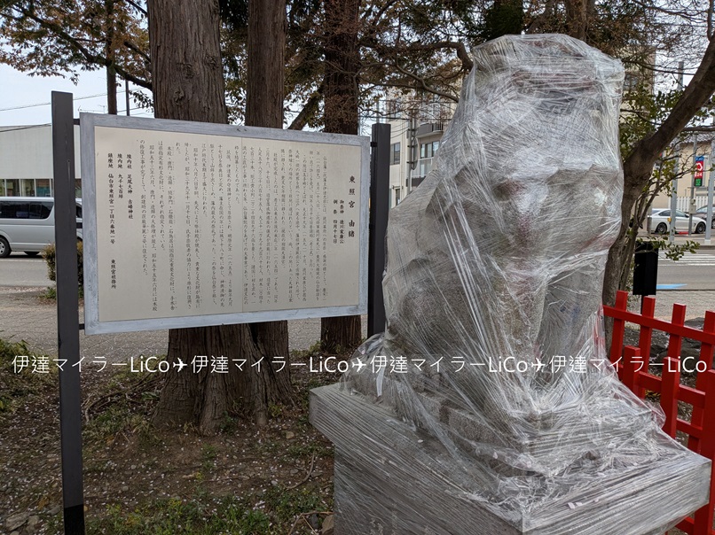 なぜか狛犬がビニール袋でグルグル巻きにラッピングされていました😲