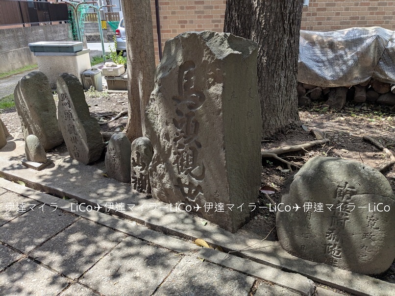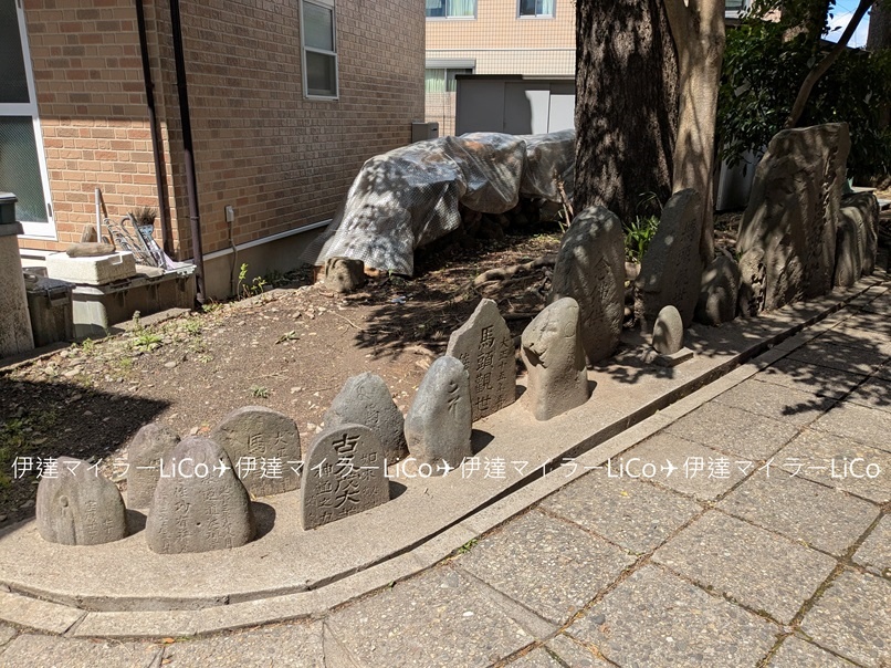 境内にあるこちらの石碑は、江戸時代に荷物の運搬の動脈となる伝馬の宿駅を偲ばせる「馬頭観音」の大きな石塔。