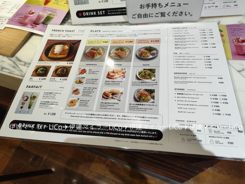 サンドウィッチ・パニーニ・パスタなどのフードメニューや、フレンチトーストやパフェなどのスイーツも🎂