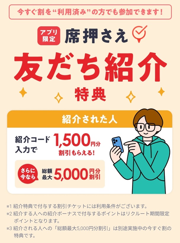 席押さえの友だち紹介や予約方法は、コチラ!!
