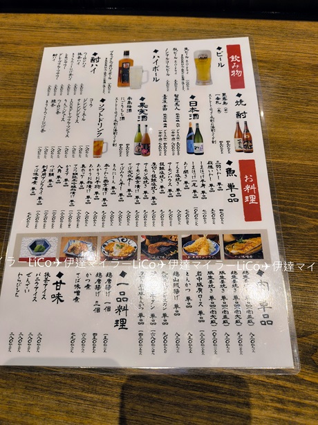 朝定食・ランチメニューは特に無く、終日同一メニューです🍴