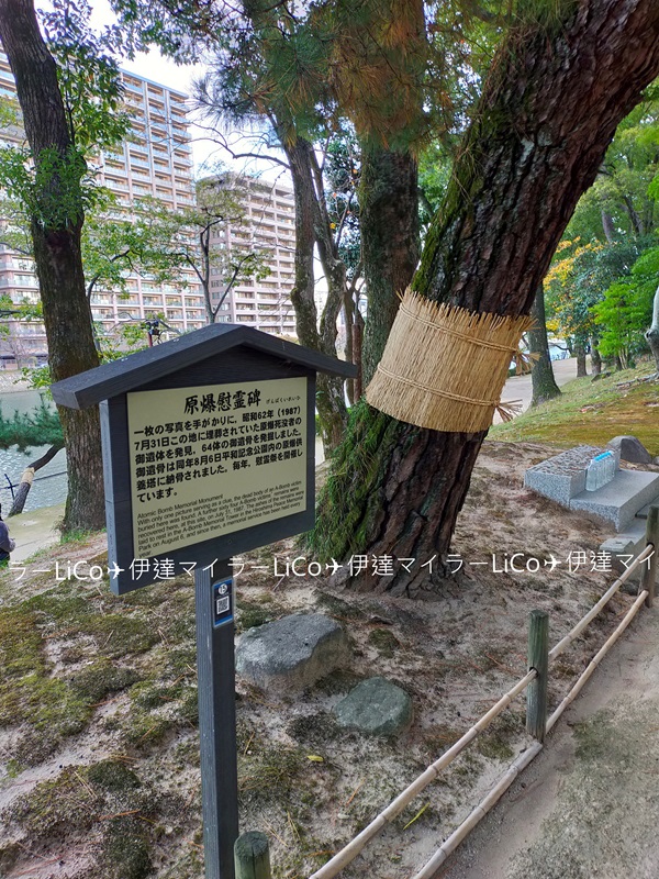 園内の一角には、恒久平和と犠牲者の霊を慰めるために「原爆慰霊碑」がありました。