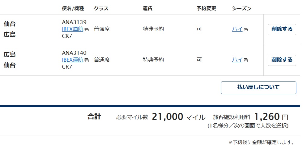 ちなみに、台湾を外して韓国&広島であれば、15,000マイルでOKです🎉