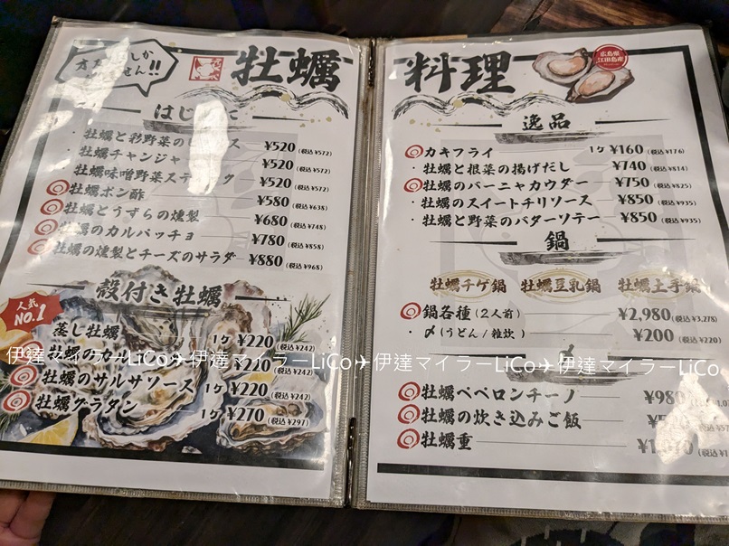 牡蠣料理のアラカルトメニューもリーズナブルなお値段です✨️