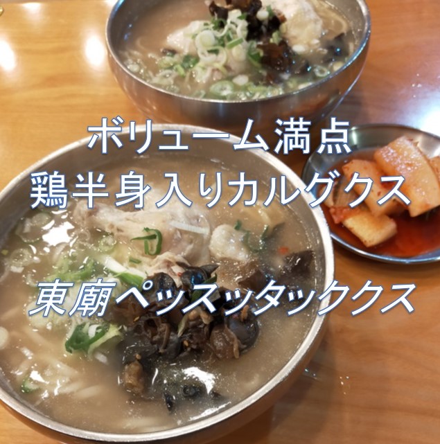 💙韓国グルメ💙「東廟ペッスッタッククス」鶏の半身入りの参鶏湯みたいなカルグクス🐔