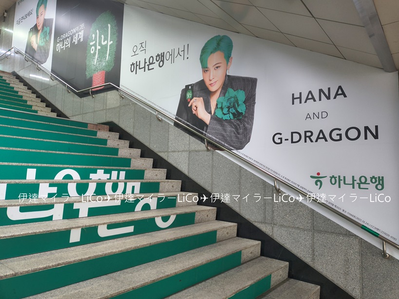 ハナ銀行(第一銀行)さんに通じる「乙支路入口駅」2番出口の階段は、BIGBANGのG-DRAGONさんでした✨