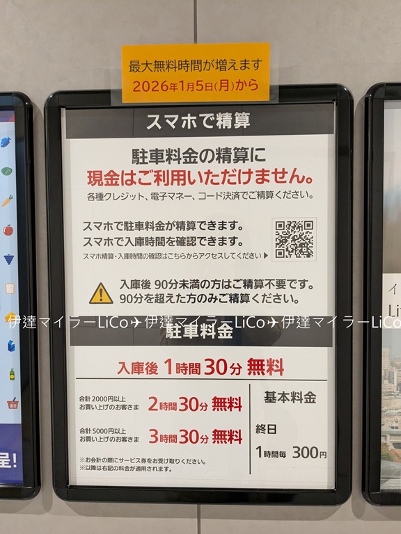 駐車場の料金は、入庫後1時間30分まで無料です🎉