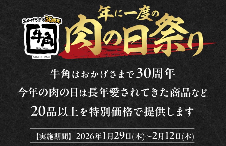 2026年1月29日(木)~2月12日(木)まで特別価格の「肉の日祭り」が全国の店舗で開催中📣