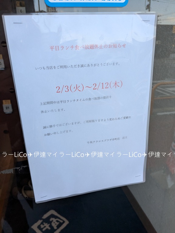 ちなみに「牛角 アクロスプラザ幸町店」さんでは、2月3日(火)~12日(木)の期間中、ランチタイムの食べ放題の提供がお休みみたいですので、ご注意ください📣