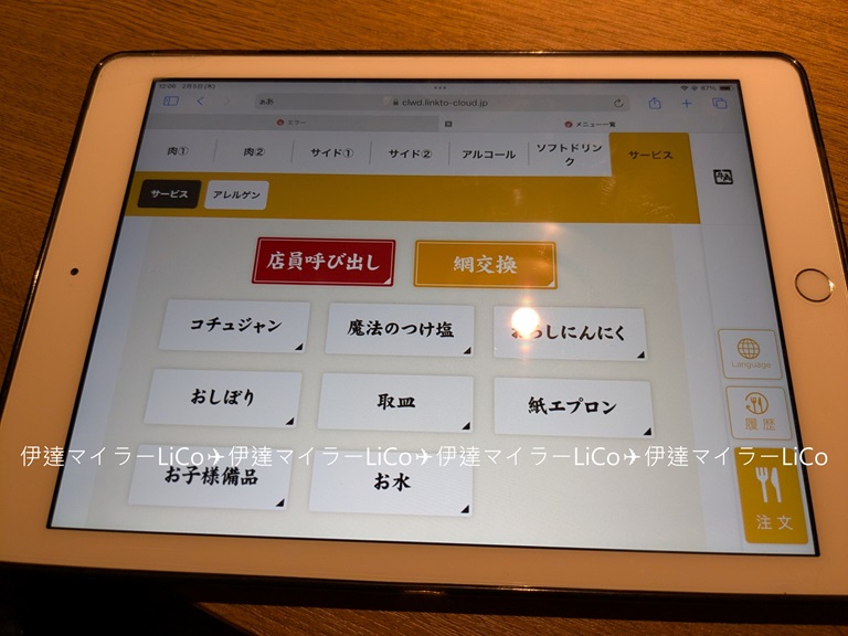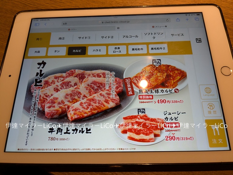 「肉の日祭り」の特別メニューは、タブレットに既に特別価格で表示されていました!